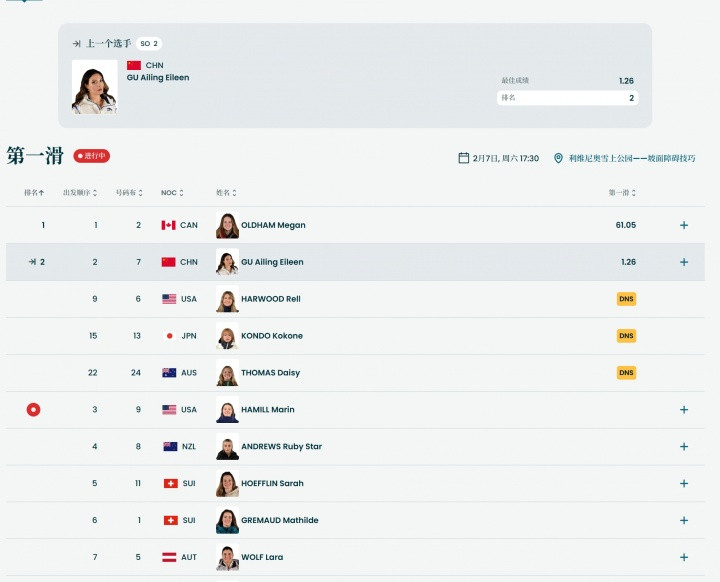 直播吧02月07日讯米兰冬奥会自由式滑雪女子坡面障碍技巧预赛,中国选手谷爱凌第二个出场,但她出现失误意外摔倒,接下来她还有第二轮的机会,继续加油!第2轮预计将于稍后18点35分开始。